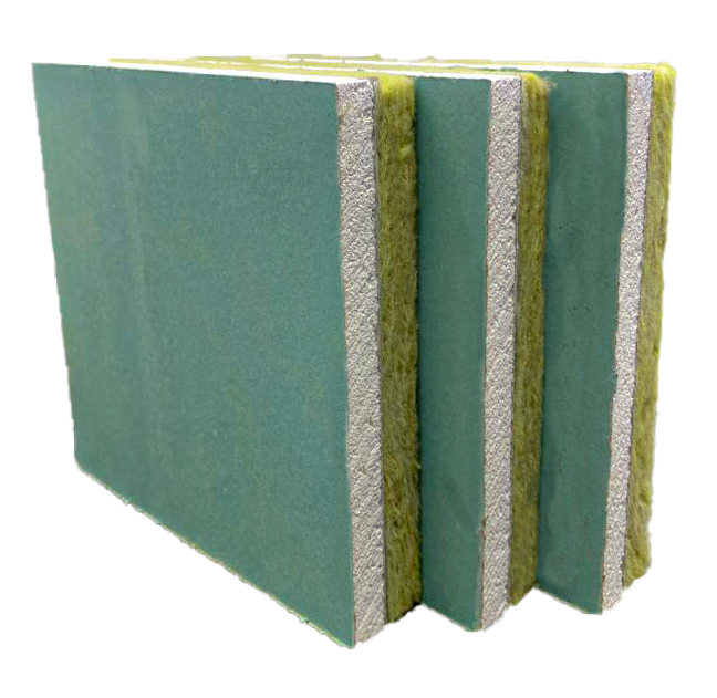 Yeşil Alçıpanlı Taş Yünü Kalibel bir yüzü yeşil alçı plaka kaplı, bir yüzü taşyünü levhadan oluşan kalibel, Kompozit bir üründür.